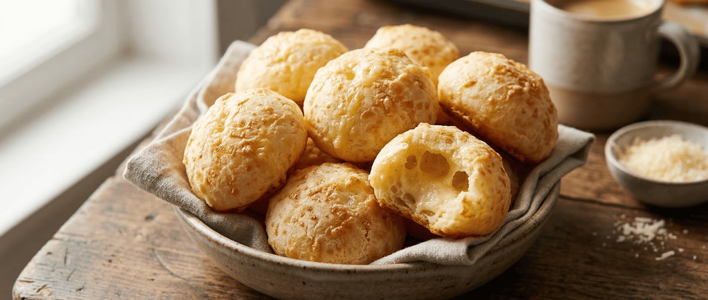 Pão de Queijo has a very short "shelf life" of about 2 to 4 hours. Because it lacks gluten and fat-based preservatives, the starch begins to retrogradate (harden) as it cools. Always serve them "piping hot" straight from the oven for the best texture.